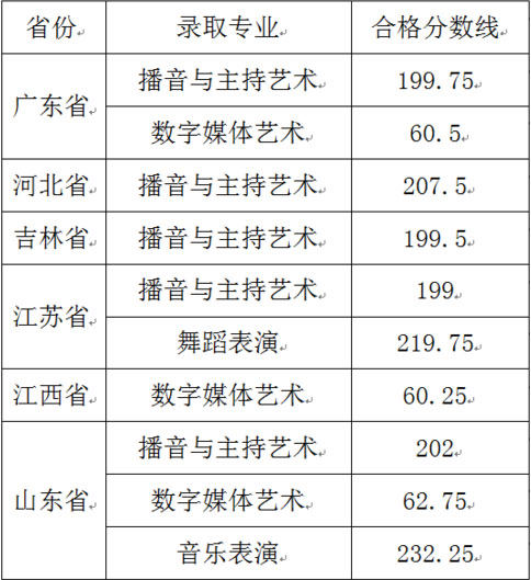 附件:湖南信息學院2021年藝術類專業校考合格分數線