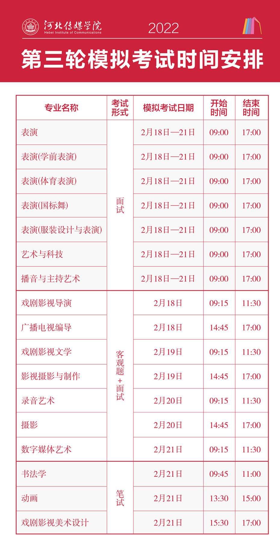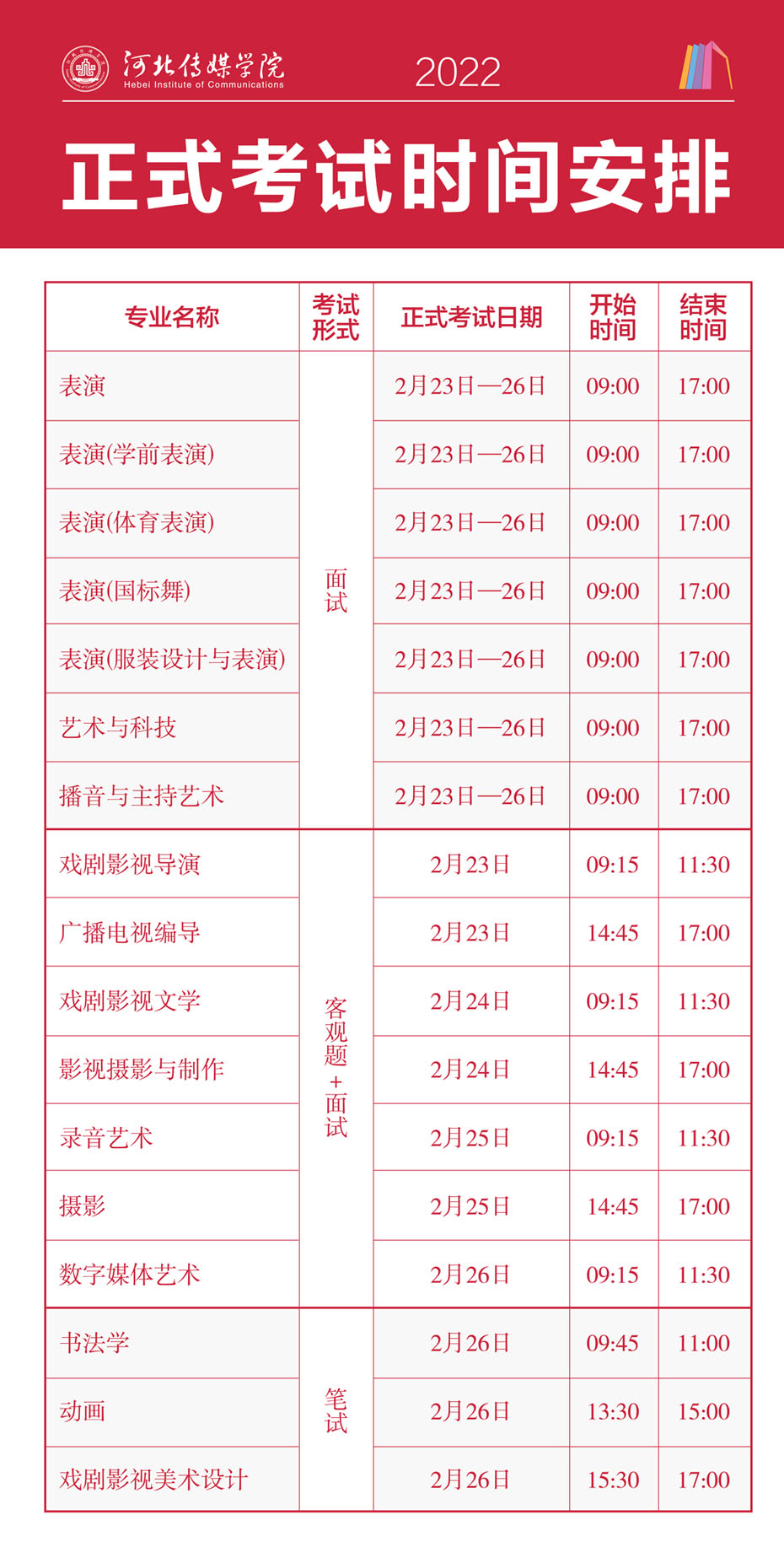 河北傳媒學院2022年藝術類校考考試時間安排