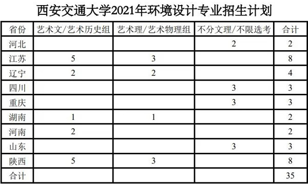 2.招生計劃:不超過35人,詳見附件《西安交通大學2021年環境設計專業招生計劃》(最終招生計劃以經教育部審核后各省級招生考試機構公布的為準)。